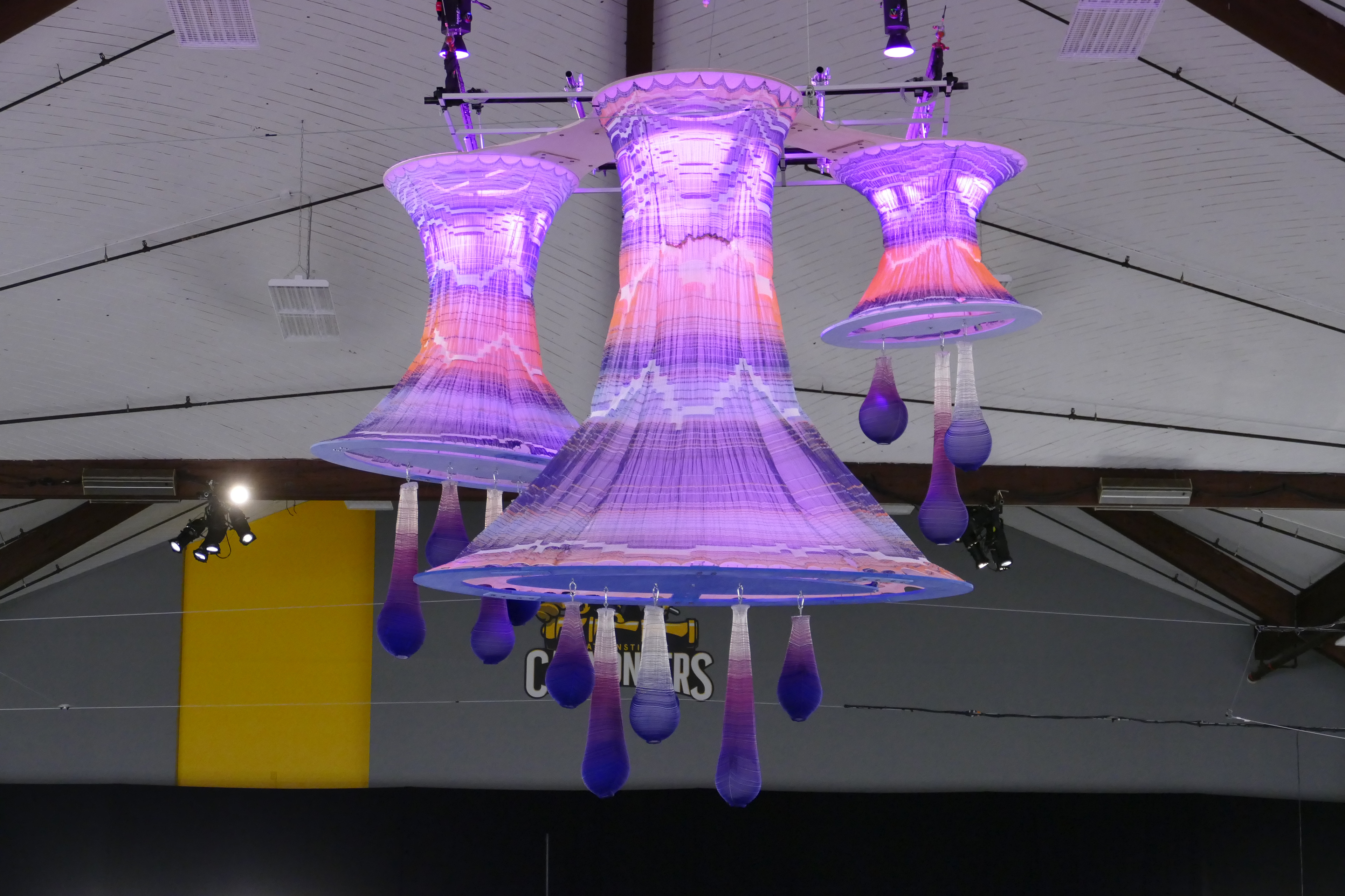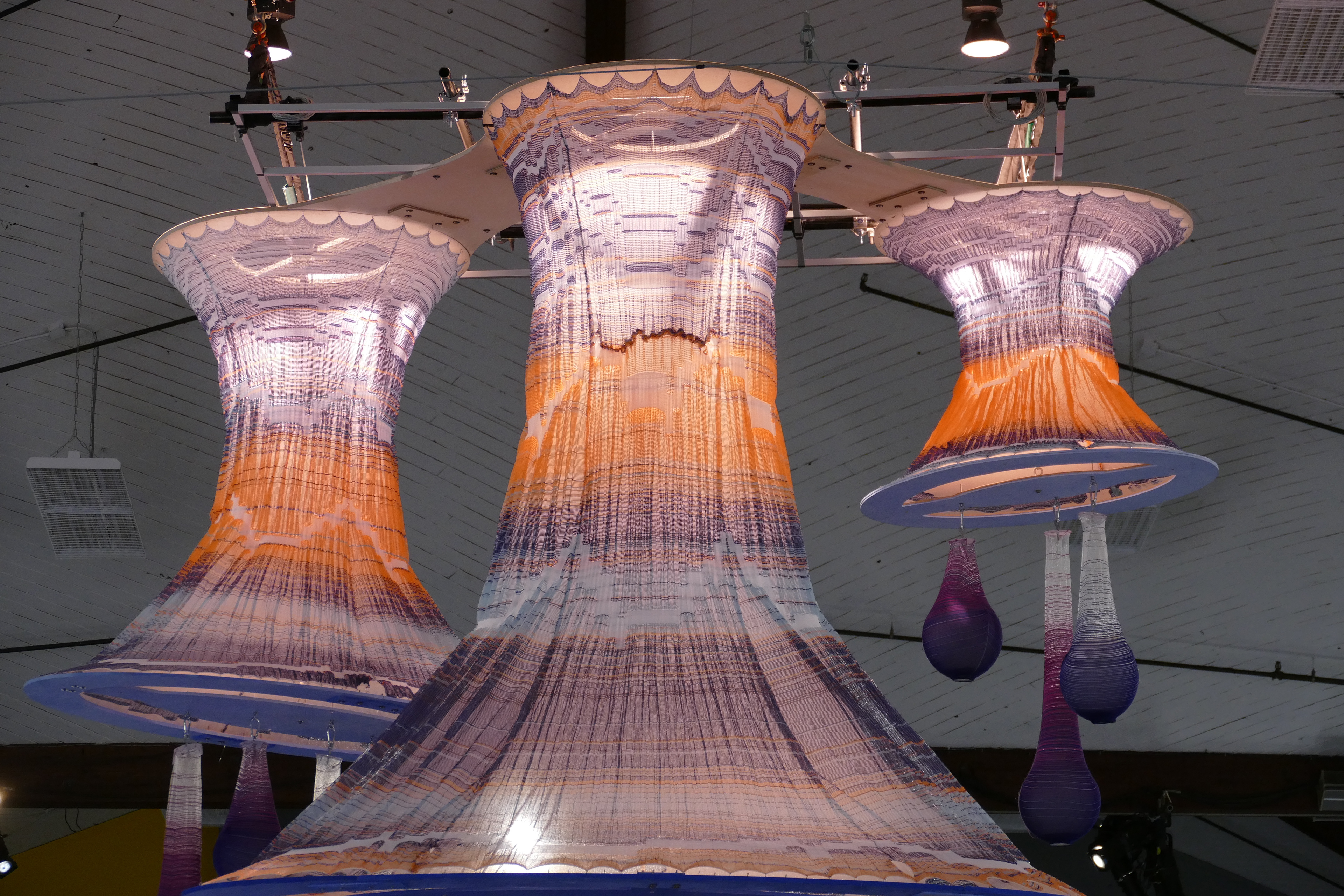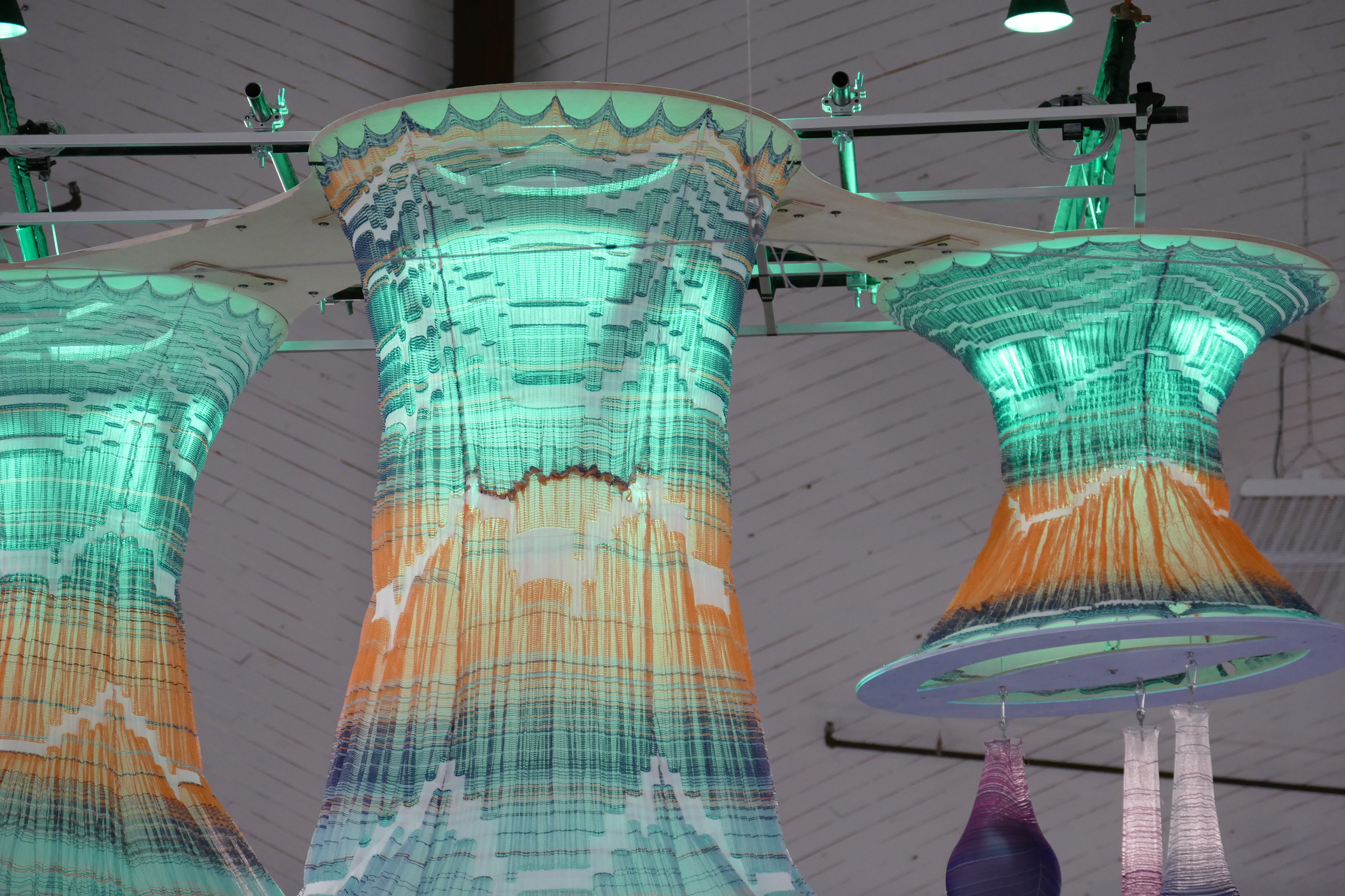 Form exploration and ideation for 8' by 12' 3D knit lighting structure.