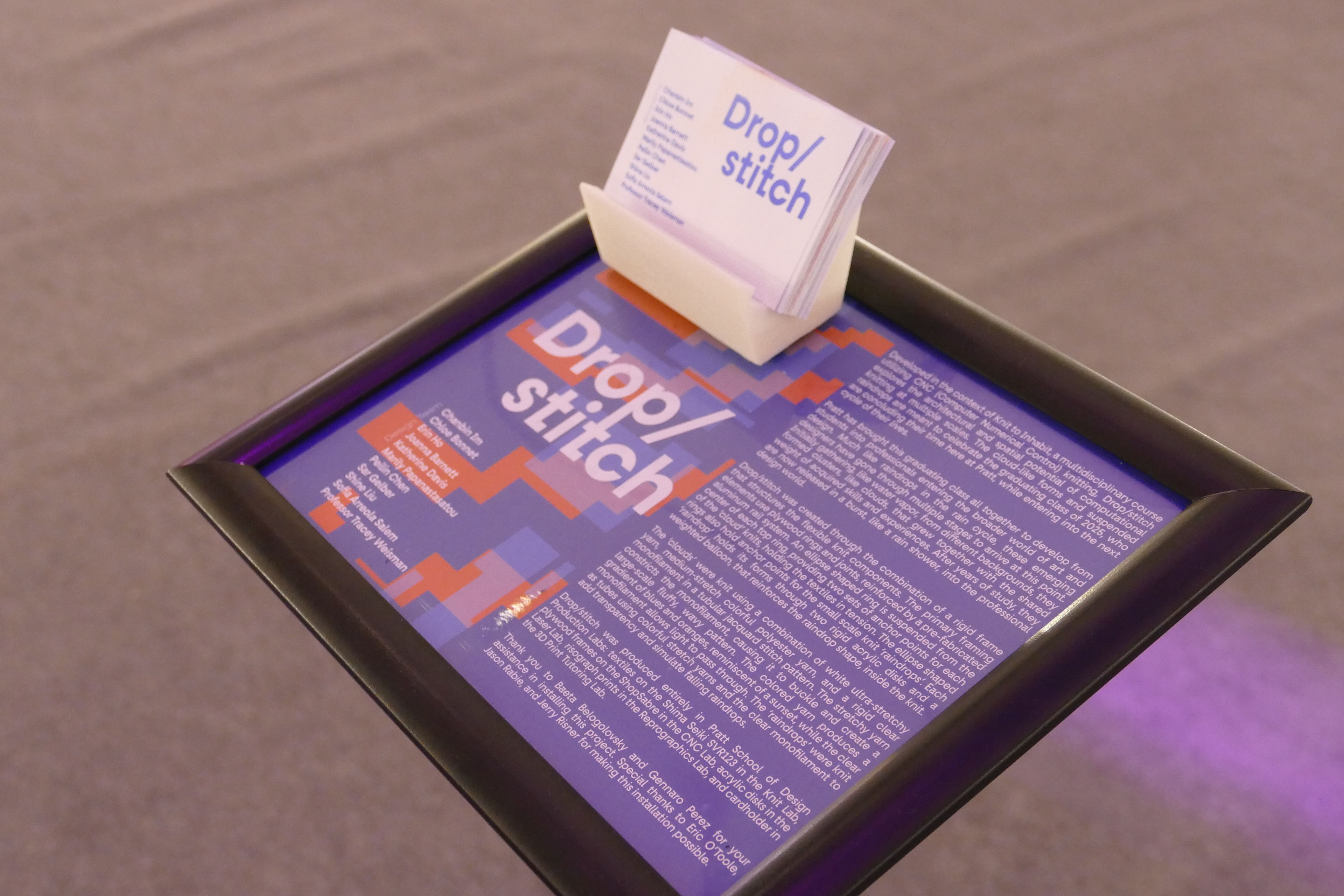This project was a group project part of a Knit to Inhabit course. This project was a 3D knit lighting structure created for Pratt Institutes Pratt Shows, where graduating students display their thesis work.